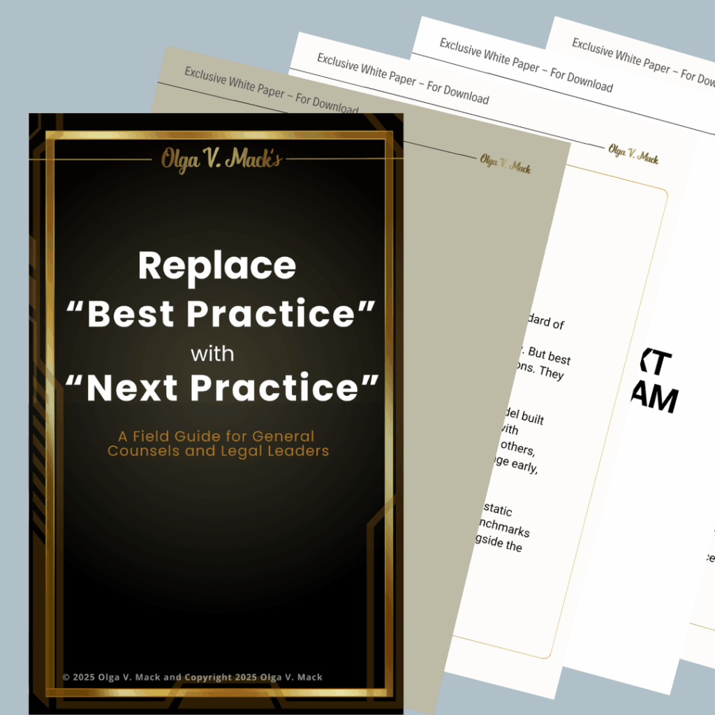 Ready to move beyond “best practices”? Olga V. Mack’s Replace “Best Practice” with “Next Practice” introduces a modern framework for adaptive legal leadership, helping in-house teams evolve from imitation to innovation, build learning systems that stay relevant, and define the next standard of legal excellence.